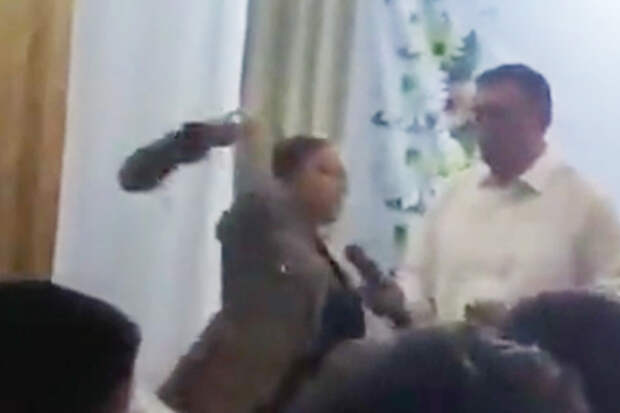 Жительница Углегорска швырнула ботинок с плесенью в мэра города при губернаторе Сахалина Жительница Углегорска на встрече с губернатором Сахалинской